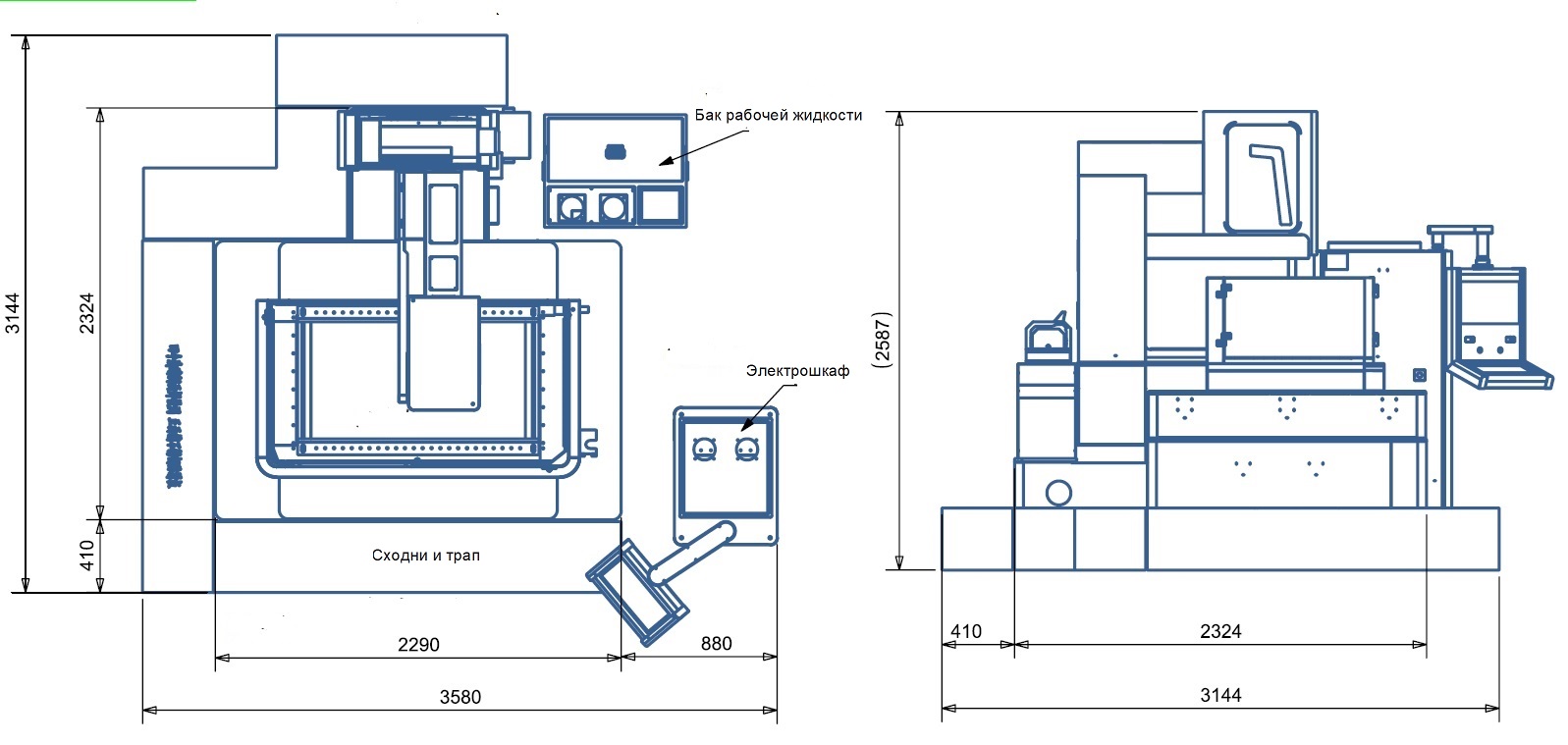 Габаритный размер установки (мм) - 3580x3144x2587 (включая сходни и трап)
