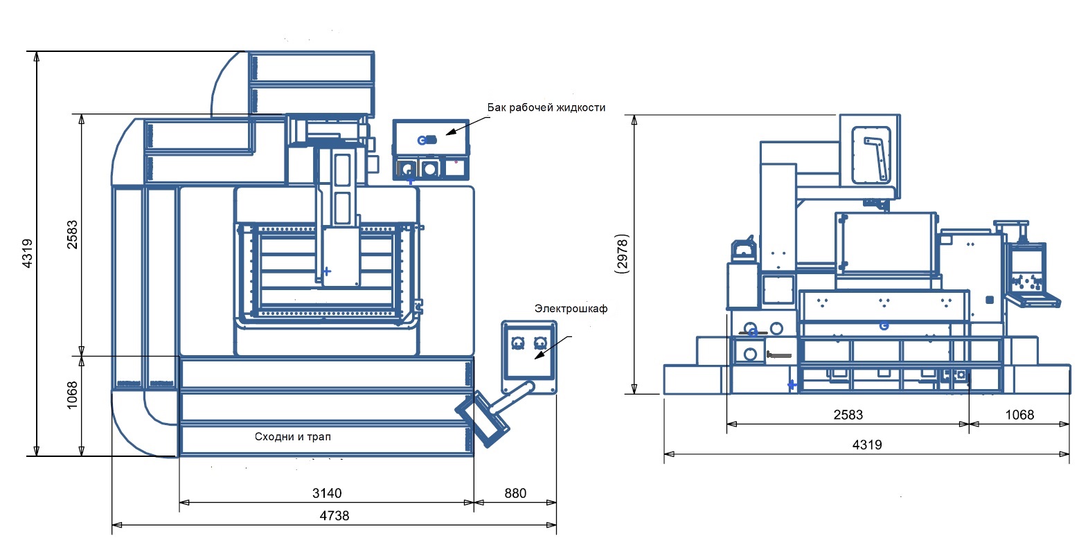 Габаритный размер установки (мм) - 4738x4319x2978 (включая сходни и трап)