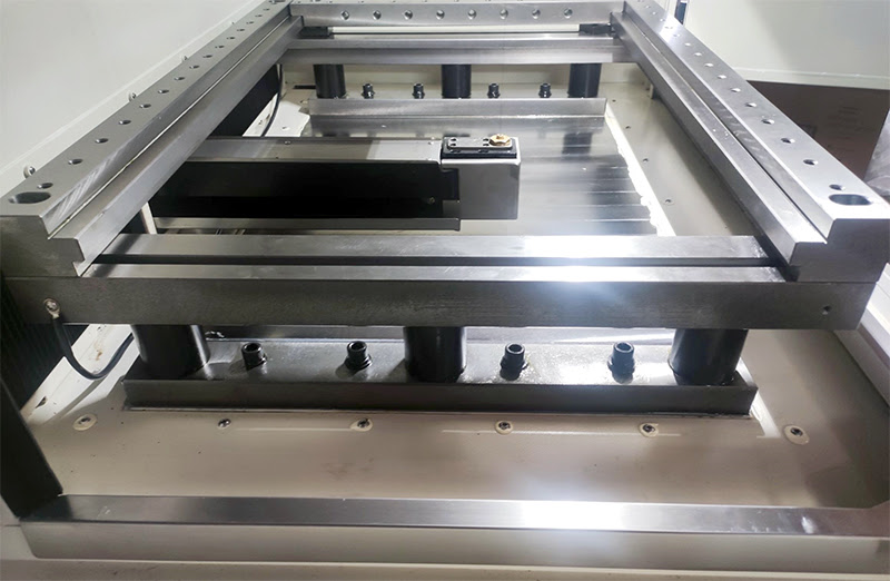 Две подвижные продольные и две поперечные подвижные балки с отверстиями М10 для установки и крепления деталей -