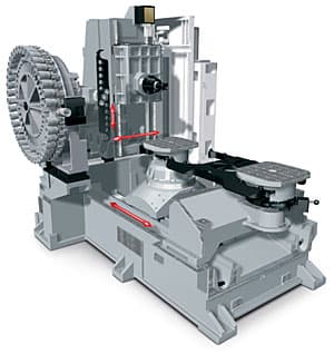 Горизонтально-фрезерный станок отличается от вертикально-фрезерного в первую очередь расположением шпинделя. Ось вращения шпинделя у горизонтально-фрезерного станка расположена параллельно поверхности рабочего стола станка.